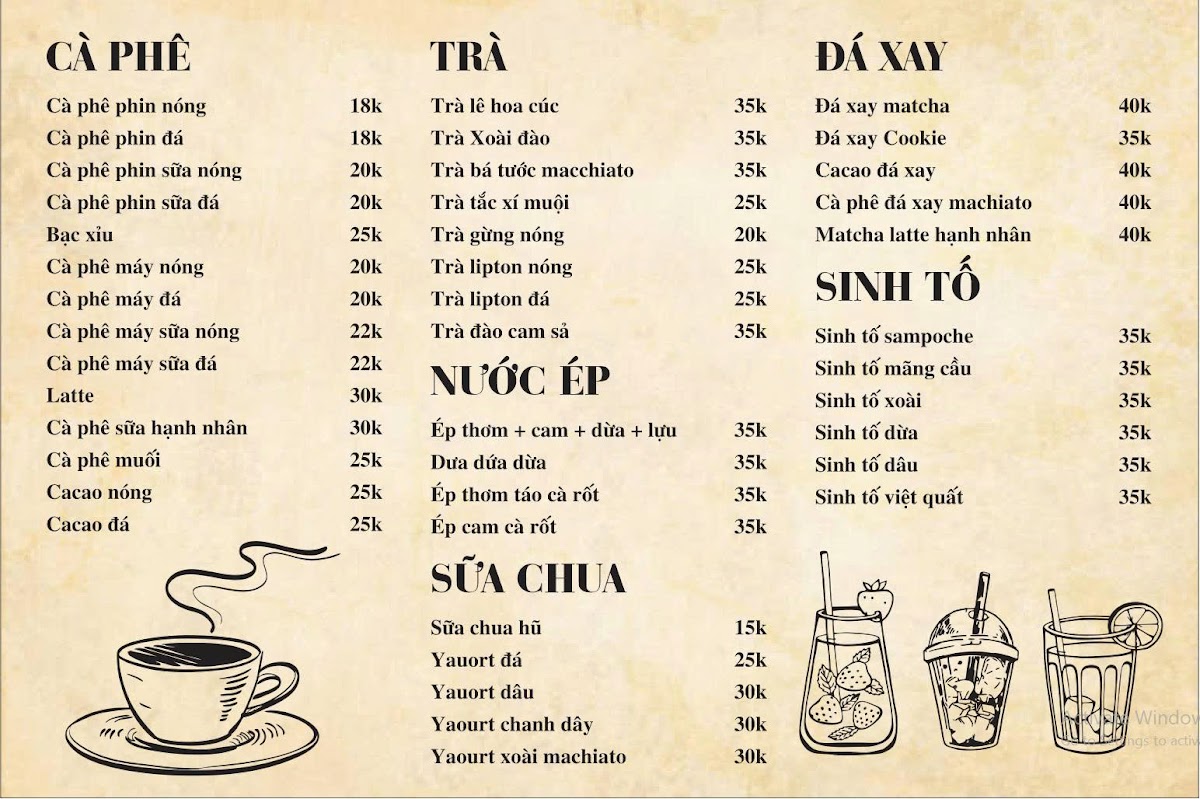 Customers rave about their experiences here, and it’s evident why. According to local patrons, the cà phê sữa đá is a must-try, offering a rich coffee experience that dances on the taste buds. Moreover, choices such as hot tea accompany their beverages perfectly, making each sip a refreshing experience. Prices are incredibly affordable, ranging from 15,000 to 35,000 VND, making it an accessible option for everyone.